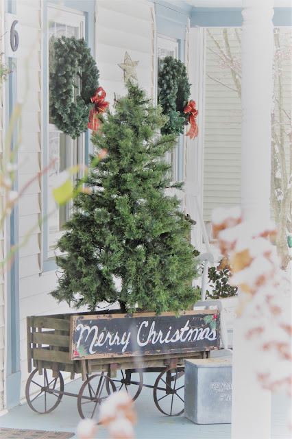 Oh my, is this not the most dreamy Farmhouse porch??? Love this entire space decorated for Christmas from While I Linger, go stop by and pin away it’s fabulous!